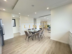 The heart of the home is the modern open-plan kitchen, fully equipped with an oven, induction hob, extractor fan, and an American-style refrigerator. It opens directly into the living area, creating an ideal space for entertaining family and friends.