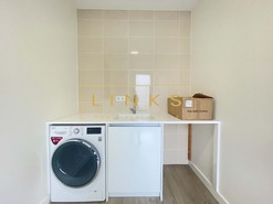 On the first floor, the bright and airy spaces create an atmosphere of calm and well-being. The villa features three inviting bedrooms, two of which enjoy the comfort of private en-suite bathrooms. A third guest bathroom offers additional convenience, while a dedicated laundry roomcomplete with washing machine and sinkadds practicality to everyday life.