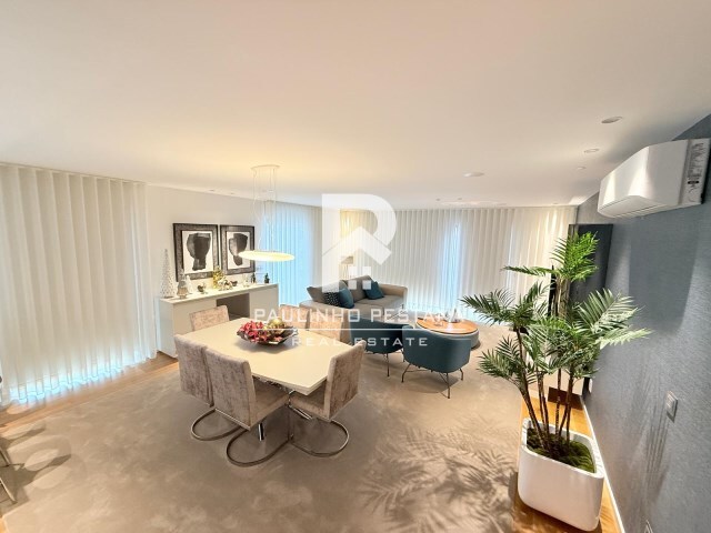 A sala apresenta-se luminosa e espaçosa, com ligação direta à zona de refeições e à cozinha em open space (ou fechada ajuste conforme o caso), totalmente equipada. Todo o imóvel está dotado de ar condicionado, aspiração central e sistema de som ambiente em todas as divisões, garantindo a máxima comodidade no dia a dia.
