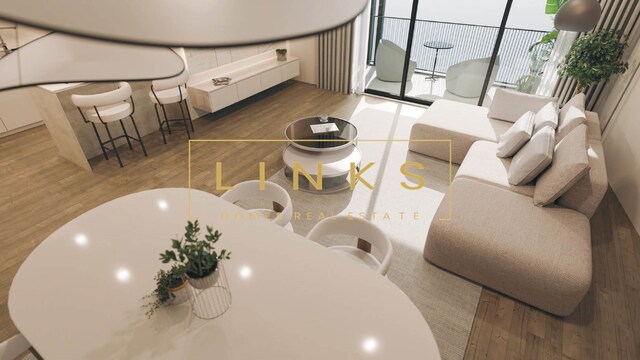 No interior, o apartamento destaca-se pela sua organização inteligente e pelas áreas bem distribuídas. A sala ampla, com excelente luminosidade natural e ligação direta à varanda, cria um ambiente acolhedor e versátil. A cozinha apresenta um design contemporâneo, aliando funcionalidade a acabamentos de elevada qualidade.