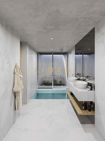 Esta villa deslumbrante possui um elevador que permite o acesso ao nível superior. Esta luxuosa residência combina elegância e funcionalidade, garantindo mobilidade fácil em todo o seu espaço.