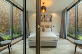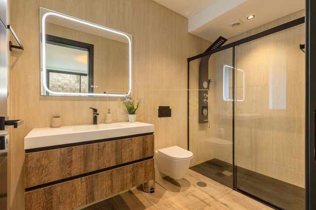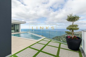 O exterior é um verdadeiro convite ao relaxamento. Dispõe de uma piscina de design moderno com deck solário, rodeada por zonas ajardinadas de baixa manutenção. O layout foi pensado para oferecer total privacidade enquanto desfruta de um pôr do sol inesquecível sobre o mar.