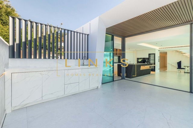 The villa stands out for its bold lines and the use of premium materials that ensure timeless aesthetics and low maintenance:
