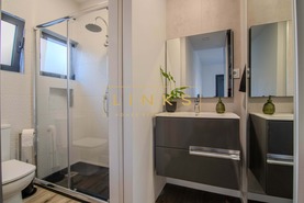 The property offers three generous bedrooms, highlighted by a master suite that includes a private walk-in closet and an en-suite bathroom, ensuring total privacy and organization.