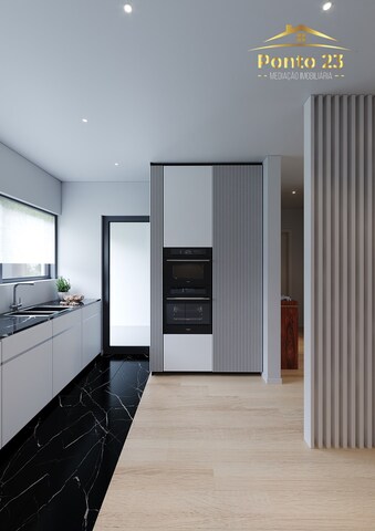 Este apartamento é composto num todo por cozinha, lavandaria/despensa, sala de estar e jantar, corredor, casa de banho, dois quartos de dormir, suíte com casa de banho privativa, varanda, lugar de garagem e arrecadação.