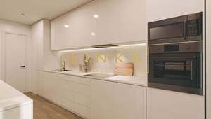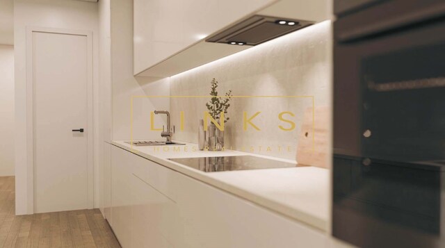 No interior, o apartamento destaca-se pela sua organização inteligente e pelas áreas bem distribuídas. A sala ampla, com excelente luminosidade natural e ligação direta à varanda, cria um ambiente acolhedor e versátil. A cozinha apresenta um design contemporâneo, aliando funcionalidade a acabamentos de elevada qualidade.