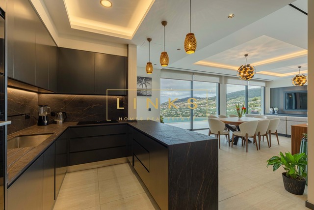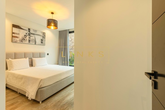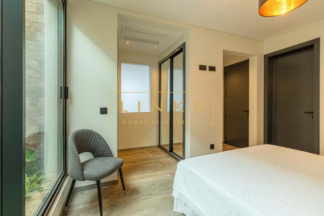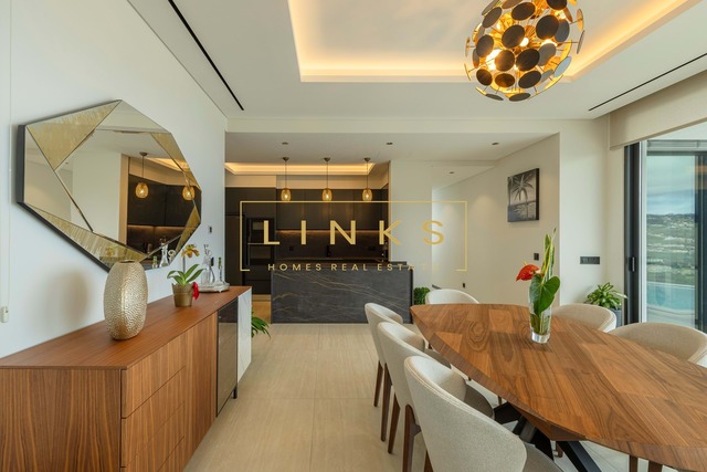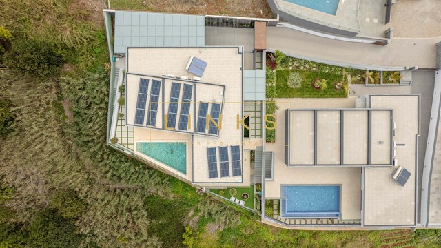 O exterior é um verdadeiro convite ao relaxamento. Dispõe de uma piscina de design moderno com deck solário, rodeada por zonas ajardinadas de baixa manutenção. O layout foi pensado para oferecer total privacidade enquanto desfruta de um pôr do sol inesquecível sobre o mar.
